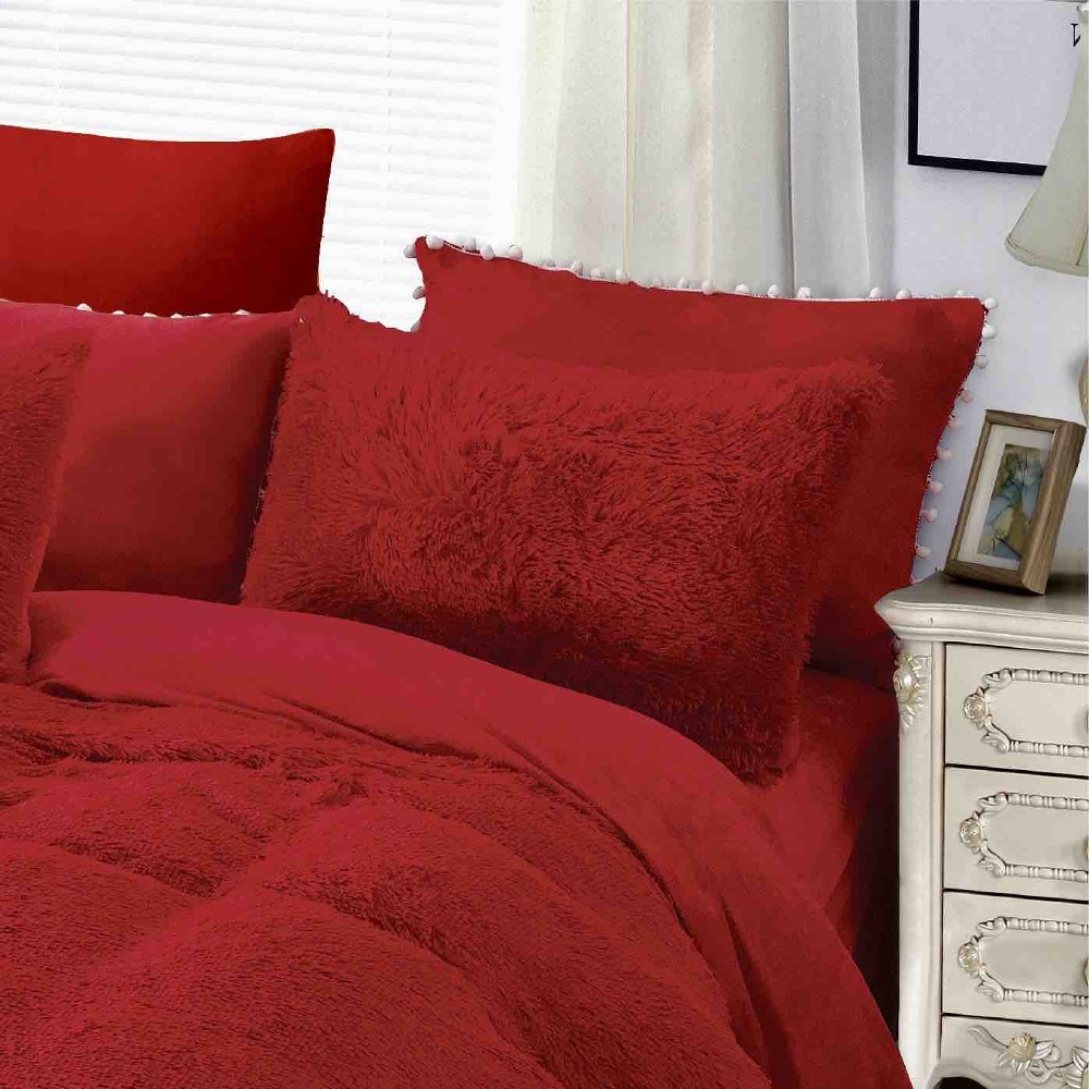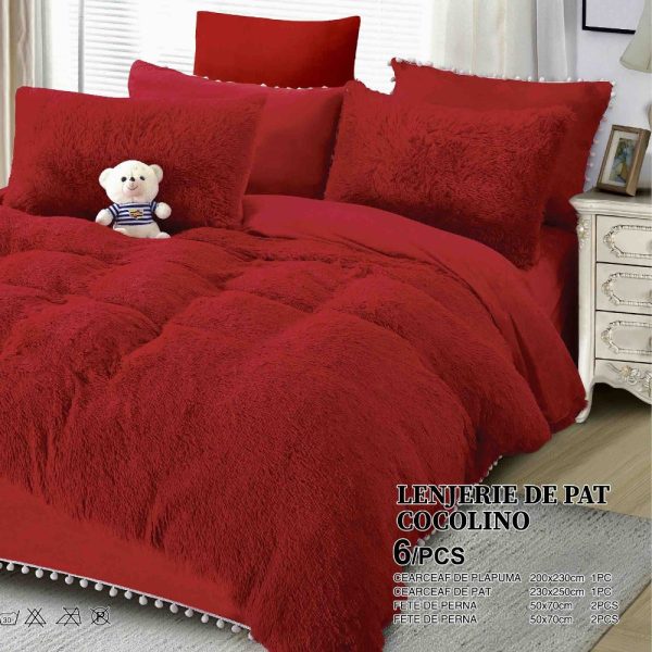 Set Lenjerie Super Pufoasa Cocolino, Model Fluffy, 6 Piese, Pat 2 persoane – Rosu – JoJo Home – PUF66496