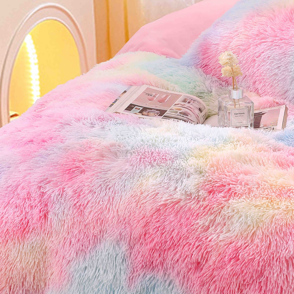 Set Lenjerie Super Pufoasa Cocolino, Model Fluffy, 6 Piese, Pat 2 persoane – Roz Degradé – JoJo Home – PUF165785