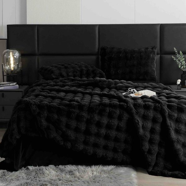 Set Lenjerie Super Pufoasa din Blanita Artificiala de Iepure, 6 Piese, 6.5kg – Negru – JoJo Home – PUF185787
