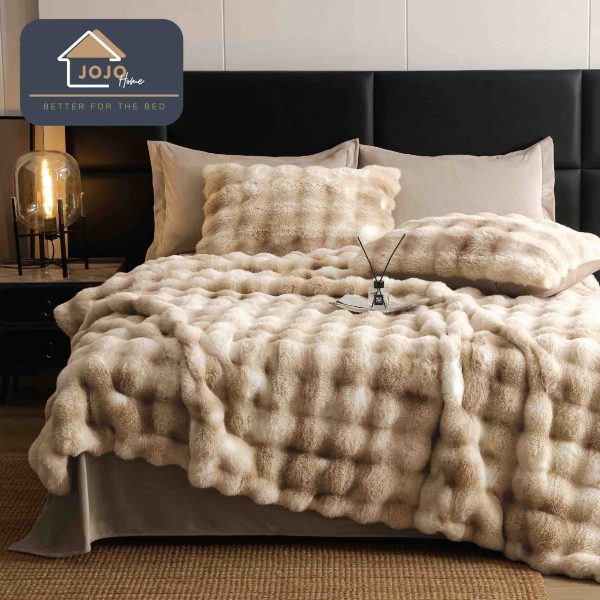 Set Lenjerie Super Pufoasa din Blanita Artificiala de Iepure, 6 Piese, 6.5kg – Alb/Maro – JoJo Home – PUF141121