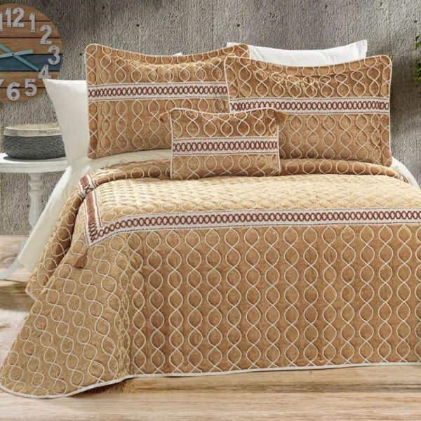 Set Luxury Brillant Dante: Cuvertura de Pat + 3 Fete de Perna, 4 Piese, Pat 2 Persoane – Altin – PUF92957