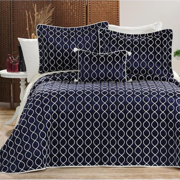 Set Luxury Brillant Dante: Cuvertura de Pat + 3 Fete de Perna, 4 Piese, Pat 2 Persoane – Lacivert – PUF93124