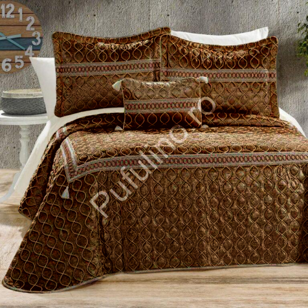 Set Luxury Brillant Dante: Cuvertura de Pat + 3 Fete de Perna, 4 Piese, Pat 2 Persoane – Maro Inchis – PUF108698