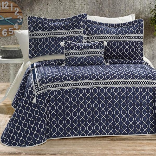 Set Luxury Brillant Dante: Cuvertura de Pat + 3 Fete de Perna, 4 Piese, Pat 2 Persoane – Mavi – PUF92972