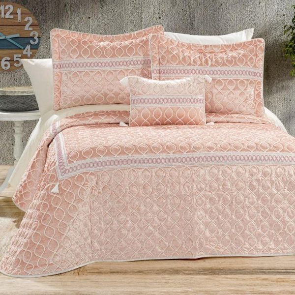 Set Luxury Brillant Dante: Cuvertura de Pat + 3 Fete de Perna, 4 Piese, Pat 2 Persoane – Pudra – PUF92952