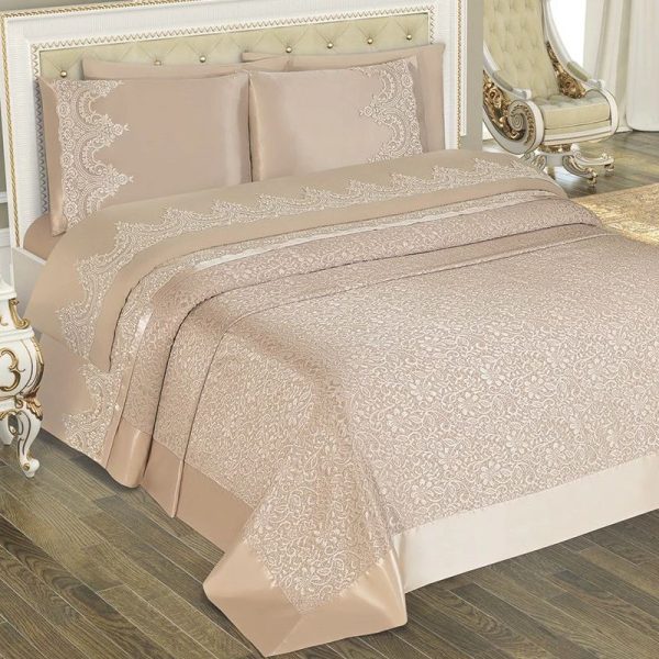 Set Luxury Elena Selin: Cuvertura, Cearsaf de pat + 4 Fete de perna, 230 x 240cm – Cappuccino – PUF116571