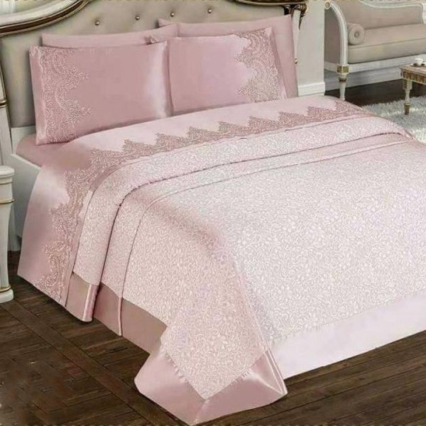 Set Luxury Elena Selin: Cuvertura, Cearsaf de pat + 4 Fete de perna, 230 x 240cm – Roz – PUF116572