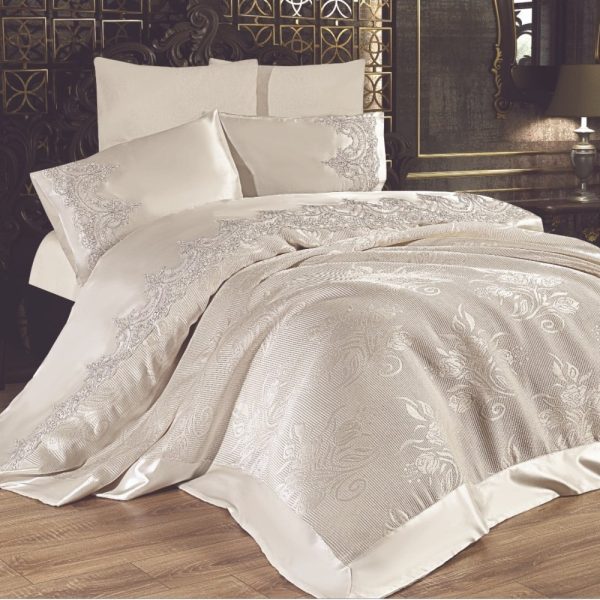 Set Luxury Mavera: Cuvertura + Lenjerie de Pat, 6 Piese, Pat 2 Persoane, Crem – Viven – PUF108533