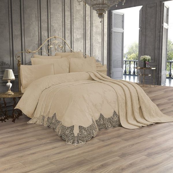 Set Luxury SAHRA 6 Piese: Cuvertura, Cearsaf de Pat + 4 Fete de Perna, Pat Matrimonial – Cappuccino – PUF123218