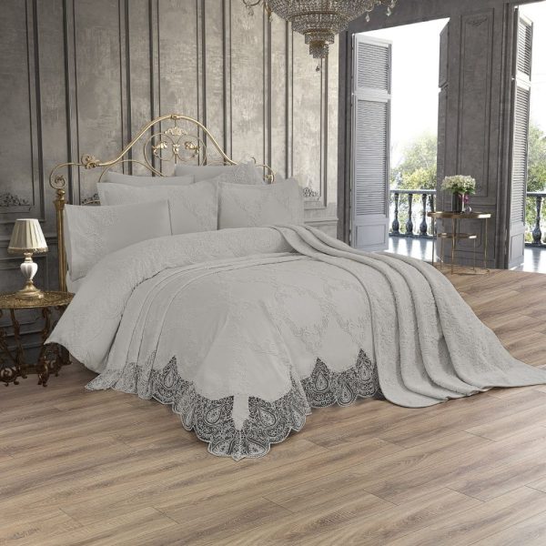 Set Luxury SAHRA 6 Piese: Cuvertura, Cearsaf de Pat + 4 Fete de Perna, Pat Matrimonial – Gri – PUF123219