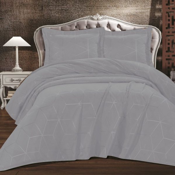 Set Luxury VERONA: Cuvertura de Pat din Policoton + 2 Fete de Perna, 240 x 260cm – Gri – PUF123227