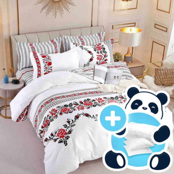 – lenjerie de pat din bumbac finet cu 4 piese pentru pat de 1 persoana;