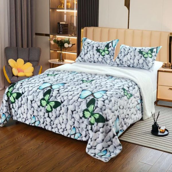 Set compus din patura cu blanita cu dimensiunea de 200 x 230cm + 2 fete de perna 50 x 70cm. Patura este groasa, ambalata intr-o geanta din pvc, si poate fi folosita cu succes atat in dormitor, pe pat, cat si in living.