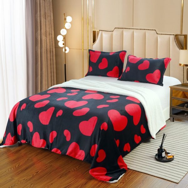 Set Patura Cocolino cu Blanita + 2 Fete de Perna, Pat 2 Persoane – Red Hearts – Sky Home – PUF70403