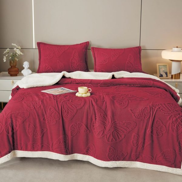 Set Patura Cocolino cu Blanita Uni + 2 Fete de Perna, Pat 2 Persoane – Grena – Sky Home – PUF136151