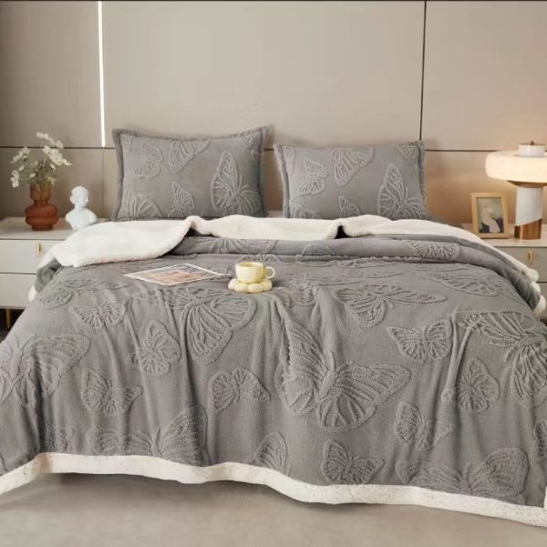 Set Patura Cocolino cu Blanita Uni + 2 Fete de Perna, Pat 2 Persoane – Gri Inchis – Sky Home – PUF136145