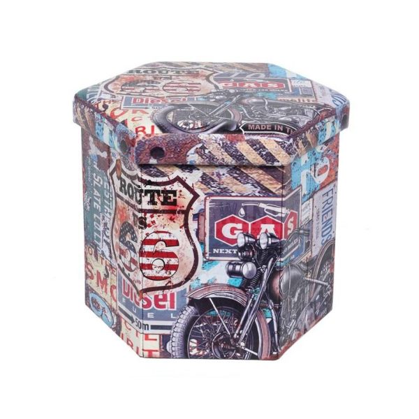 Taburet pliabil hexagonal cu spatiu de depozitare, Bike – Heinner – HR-HEXFLD43-BKE