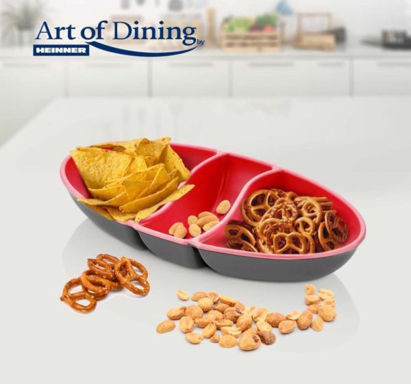 SET DOUA TAVI APERITIV CU 3 COMPARTIMNTE, 25.5 x 15 x 3 CM, ROSU, ART OF DINING BY HEINNER